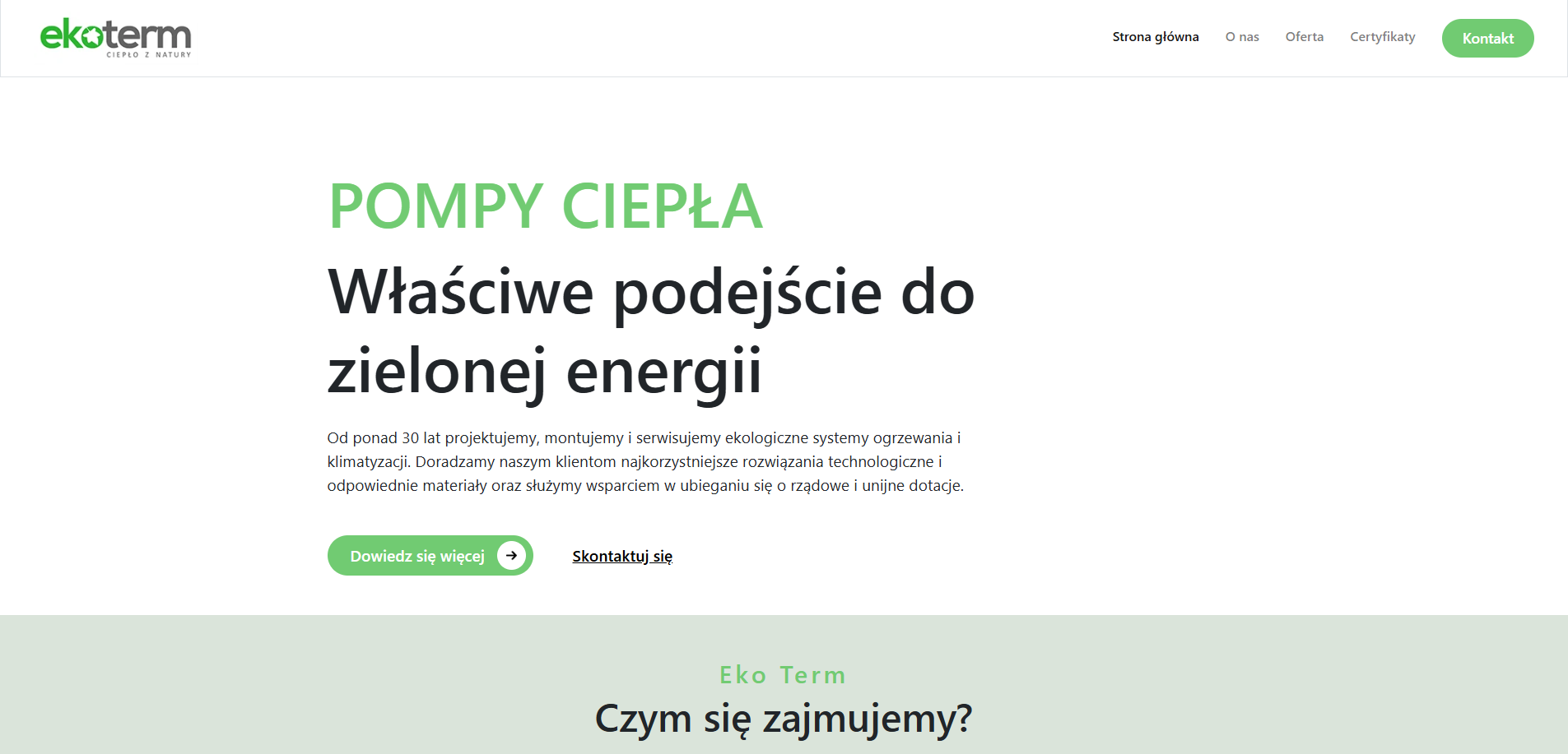 Ekoterm is a professional website for a company specializing in the installation of heat pumps, air conditioning, ventilation, and photovoltaic systems. The site showcases their expertise in delivering energy-efficient and sustainable solutions. It offers clear information about services and benefits, making it easy for customers to understand their options. The design is clean and user-friendly, reflecting the company’s commitment to quality and innovation. Ekoterm aims to help clients reduce their environmental footprint while improving comfort and energy savings.